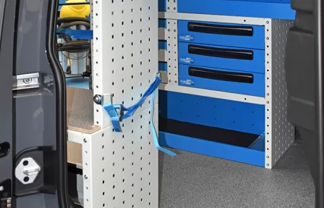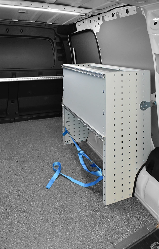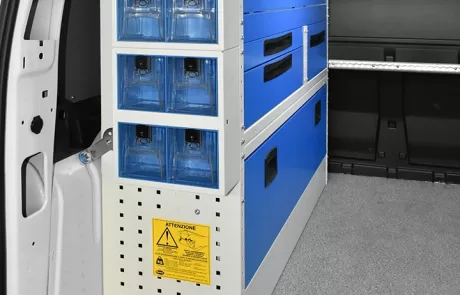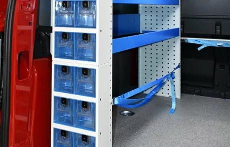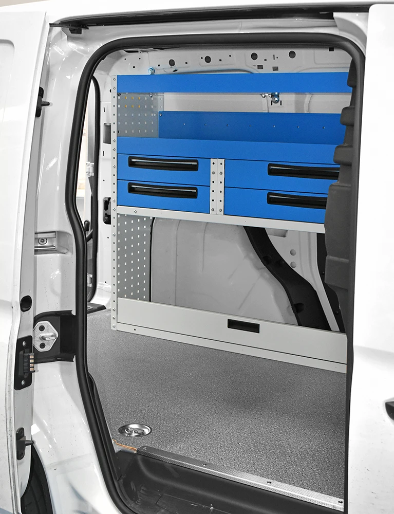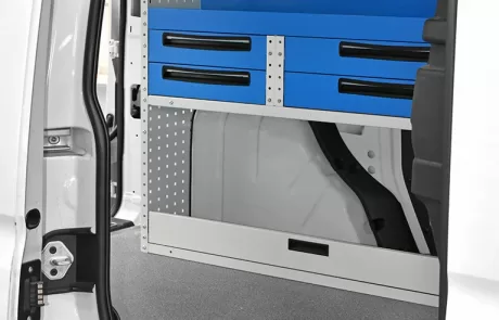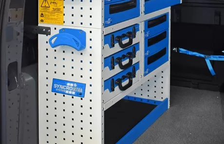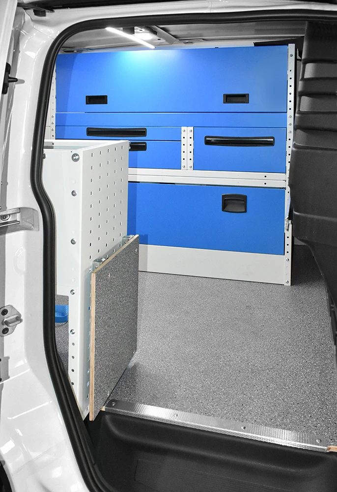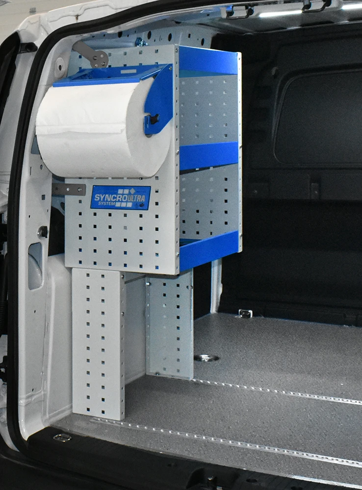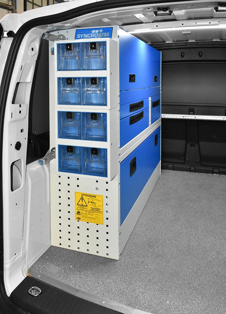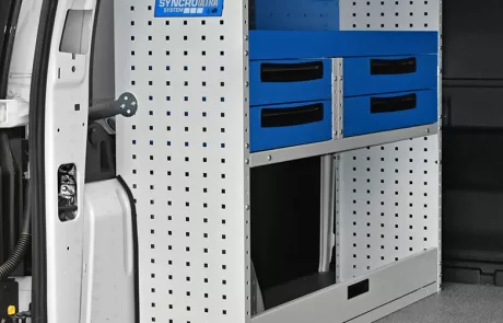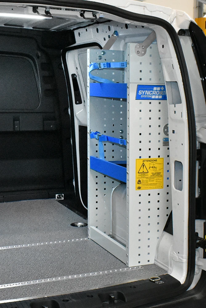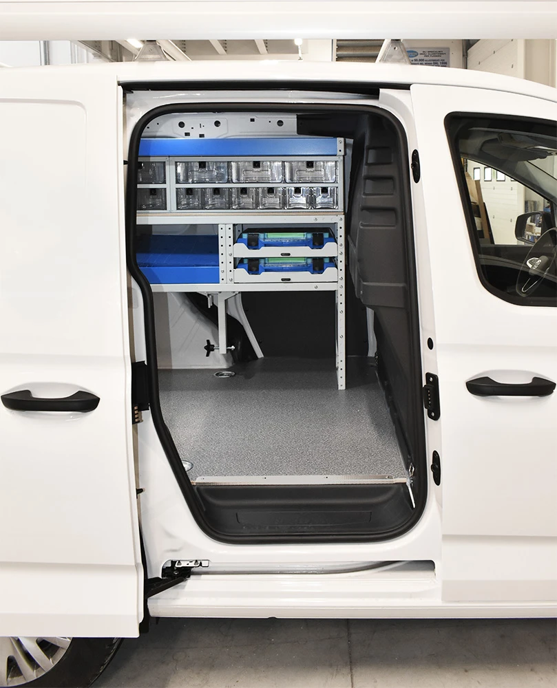 Cu solutia sistemului Syncro pentru Volkswagen Caddy va veti maximiza capacitatea de marfuri transportate in timp ce toate rafturile, unitatile si trusele de scule vor ramane ordonate si usor accesibile.