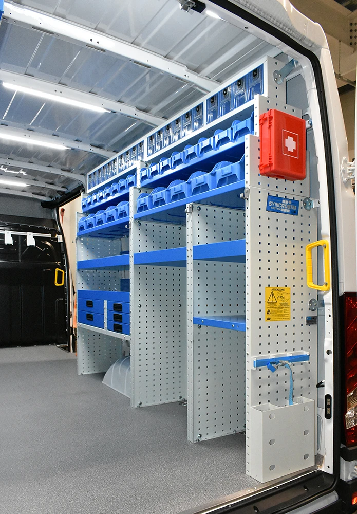 DAILY 2014 L4 H2 Furgonetele Iveco Daily sunt printre cele mai potrivite pentru dulapurile si rafturile Syncro.Cu echiparea Syncro veti economisi timp datorita stocarii eficiente ale uneltelor. Cere o oferta ! Exemplul 1 Exemplul 2 Exemplul 3 Exemplul 4 Exemplul 5