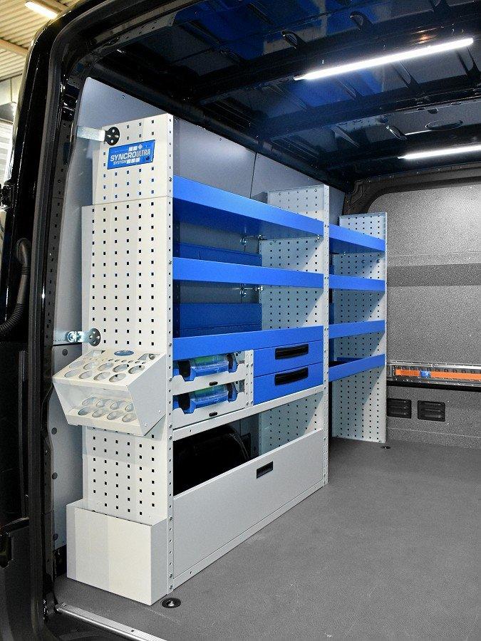 Solutiile de rafturi Syncro System pentru Mercedes Sprinter elimina dezordinea si pierderea de timp.