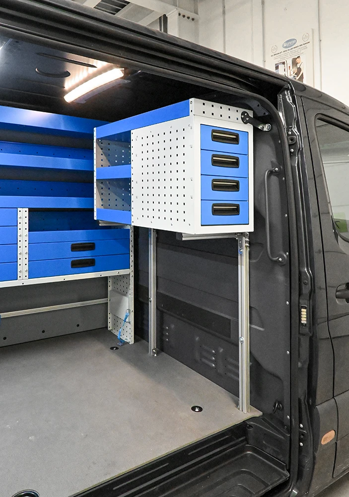 Solutiile de rafturi Syncro System pentru Mercedes Sprinter elimina dezordinea si pierderea de timp.