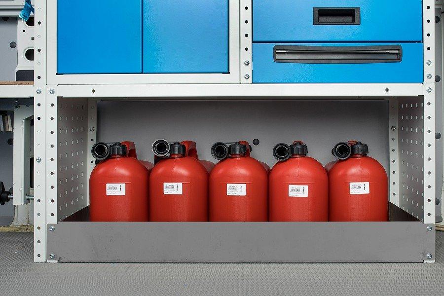 Aceste tavi din otel inoxidabil sunt extrem de usor de instalat si de indepartat pentru golire si curatare. Se potrivesc intre doua panouri laterale. Recipientele cu lichide transportate in aceste tavi pot fi imobilizate cu ajutorul chingilor sau alte sisteme de fixare.